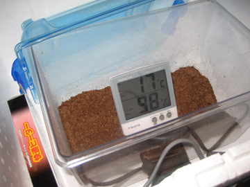 飼育日記では、温度設定5度の冷蔵庫内での実験でしたが 今回は11/17~11/18日の常温!野外にて実験いたしました!