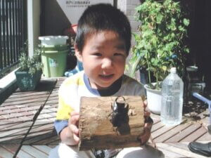 お父さんと一緒に育てた虫です。小さいけど太い体と、かっこいいアゴが