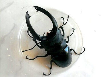 ツヤクワガタが好きで、黒土マットを常用しています。この個体はミンダナオ島産のワイルドメス46ミリから飼育した個体で、幼虫時の最大体重が68グラムあり、大型ヒラタ並の重さだったため、ケースも中ケースを使用しました。エサも減る度に足し、とにかく無事の羽化を祈りながら飼育しました。当個体の兄弟も90ミリ台2頭と充分な大きさでした。その他にも黒土マットでは、リュートネルツヤ、インペリアスツヤ、ラティペニスツヤ、ゾンメルツヤ、キプルツヤなどの羽化に成功しています。黒土マットは、まさに「ツヤマット」といえます。