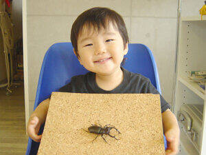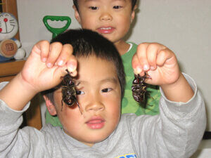 お父さんの誕生日にお兄ちゃんと一緒にプレゼントしたクワガタの子供です。
