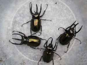 アウラタキンイロが羽化しました。♂33mm♀24mmです。羽化までの詳細内容は以下のとおりです。<羽化までの内容>使用したエサ:くわマット設定温度:25℃前後。エサ交換回数:交換なし:プリンカップ120㏄使用羽化までの期間:約5ヶ月ランプリマ系は飼育も簡単で羽化までも早くとても飼い易いです。先日のインスラリスに続きこのアウラタも例外ではなく成長もとても早く羽化してくれました。ただアウラタの場合、交尾をさせるタイミング、いわゆる熟成が非常に長い場合があります。この個体の親虫は熟成して交尾をさせるまでに約1年近くかかりました。その辺がパプキン等と違う所ですね。(^^)
