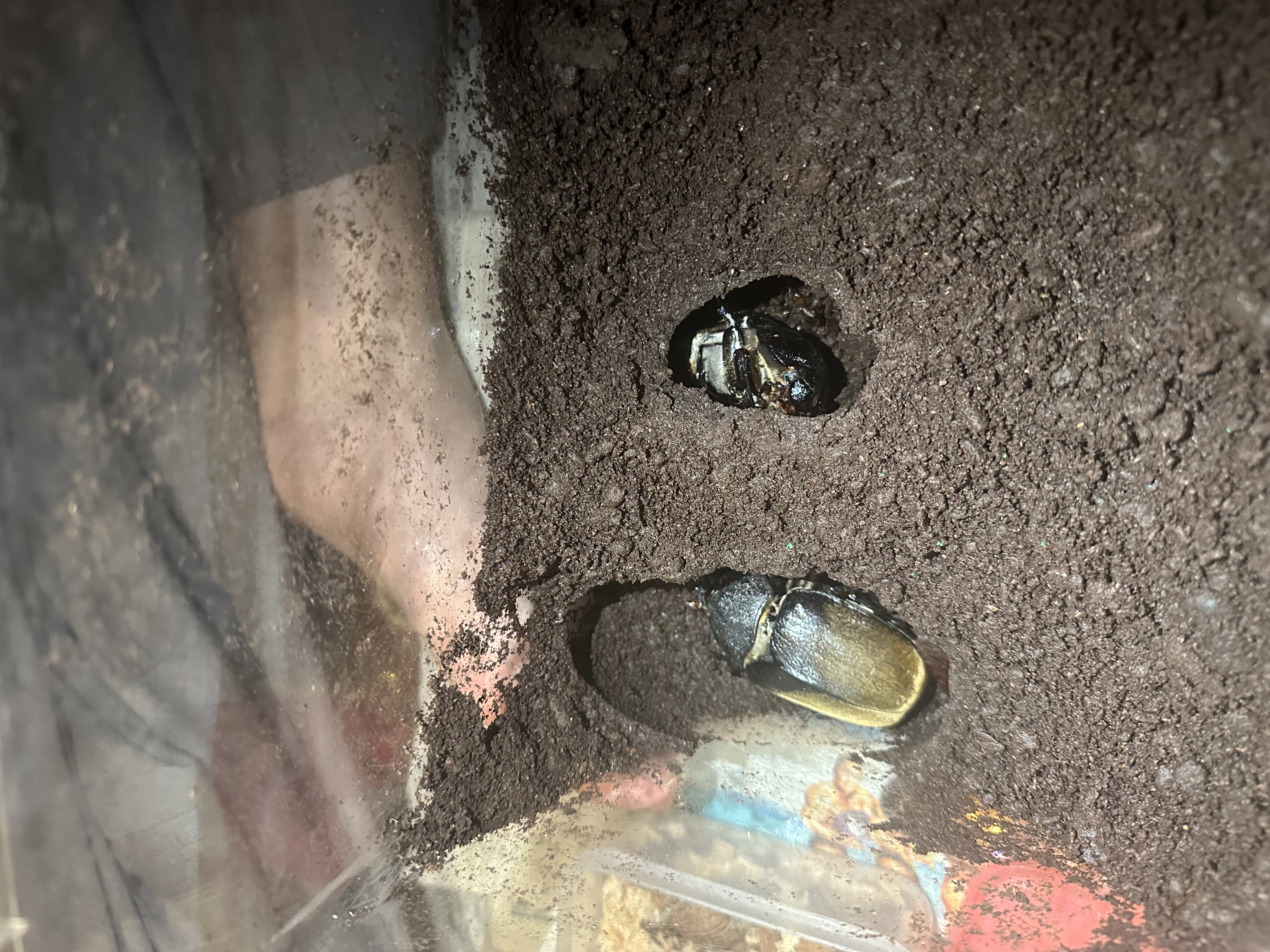 最終的にはコバエシャッター大ケースにオスメス半々くらいで6匹入れで管理していたが、一部のオスを除いてうまく蛹室を作り、蛹化不全などはなかった。