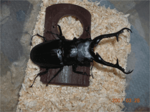 グラントシロカブトが羽化しました。体長は羽化したばかりで正確ではありませんが、おしり部分をあわせて82ミリ以上あります。マット交換は羽化まで5回、最終時のみ使用済みのきのこマットを使用し、その他はきのこマットのみで育てました。