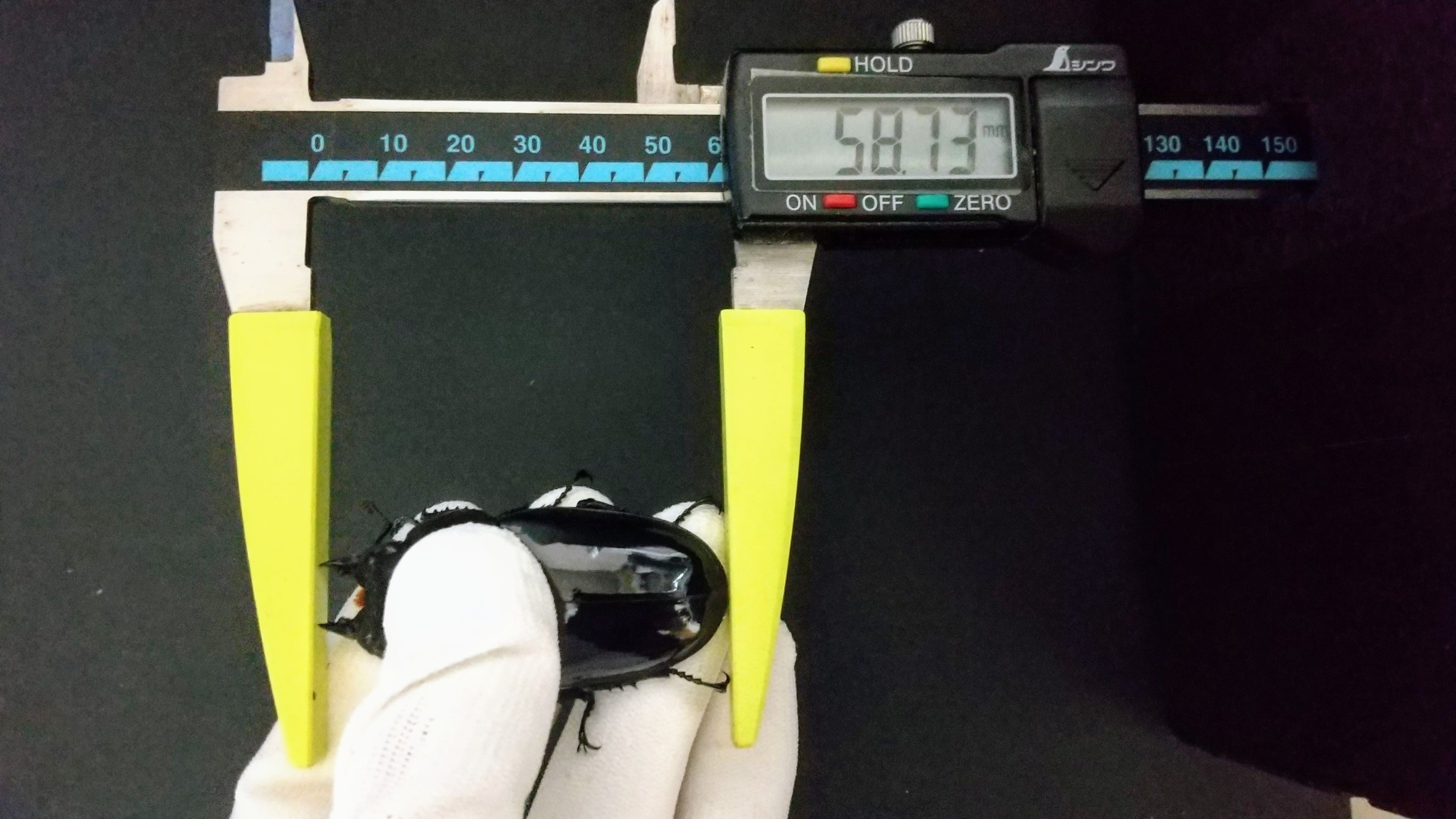 血の入れ替えと菌糸銘柄変更が重なり、結果が出るのに時間がかかりましたが無事に大型クラスを出せました。この個体の他にも58mm後半の個体が出ており、今後も期待できると手応えを感じています。オスの結果も楽しみです。