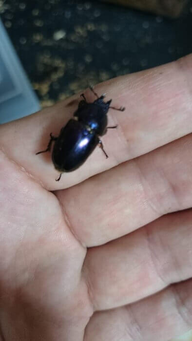 親虫は♂・♀ともにブルー。産卵床と同じくわマットを使用して、200ccプリンカップで飼育。通常3か月置くところ、パプキンは成長サイクルが早いので2か月でマット交換しようとしたら、1頭だけ早期羽化していた。後はまだ3頭が幼虫、2頭が蛹の状態で、継続飼育中。