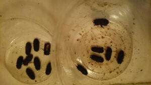 幼虫管理していく際に、穴をあけたプリンカップだと、PPボトルと違って乾燥が早いので、水分多めにて管理したのだが、多過ぎたようでマットの劣化を招き幼虫13頭が★になってしまった点が悔やまれる。