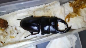 大型種では今まで何故か♀ばかり羽化してきたが、今回初の成功例。大きさは100mmに届かなかったが、満足しています。大事に育てて、累代したいです。