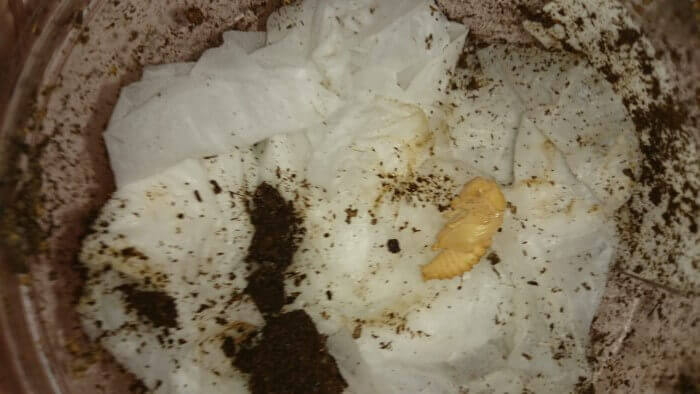 1頭のみ蛹の状態でティッシュペーパーで人工蛹室を作って羽化の目安にした以外は、蛹室を壊さないように気を付けて元のマットにそっと戻した。