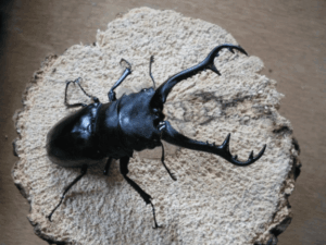フローレス産と同じ亜種のギラファですが大型を出すのは難しいです。今までに羽化してきたのは90から100ミリです。菌床飼育でもしておりますが、我が家では合わないのか90ミリ台の小型で羽化してきます。まだ幼虫が何頭かいるのでそれらに101ミリアップを期待します。