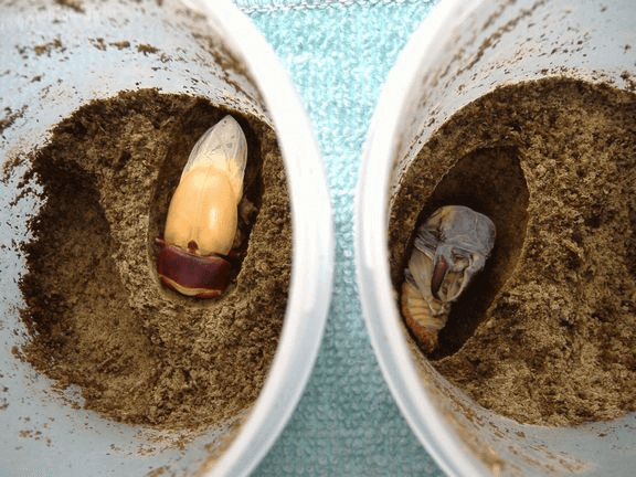 割り出しでプリンカップ投入初令中期~後期を300cc2回目 600cc3回目 1100cc 4回目 1100cc2007年6月7日羽化で62mmの結果であった。 添加剤なし、常温でこの結果に大満足。コスト的にも言うことありません。恐るべし「くわMat」!! 下阿古谷産にもコレ使ってます。画像2は羽化間近と羽化途中の個体ですが共に60アップでしょう。