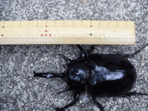 H・エクアトリアヌスが羽化しました。羽化までの詳細内容は以下のおとりです。<羽化までの内容>使用したエサ:きのこマット使用した容器:小ケース設定温度:23~25℃前後。エサ交換回数:交換4~5回羽化までの期間:約14ヶ月サイズ♂149㎜最後の1頭になりましたが、150㎜は越せませんでした。正確に言うと149.8㎜です。前にエクアトが羽化した時にも紹介しましたが、150㎜UPは1頭のみでした。ですが平均的に140㎜UPが多く満足いく結果でした。(^^)