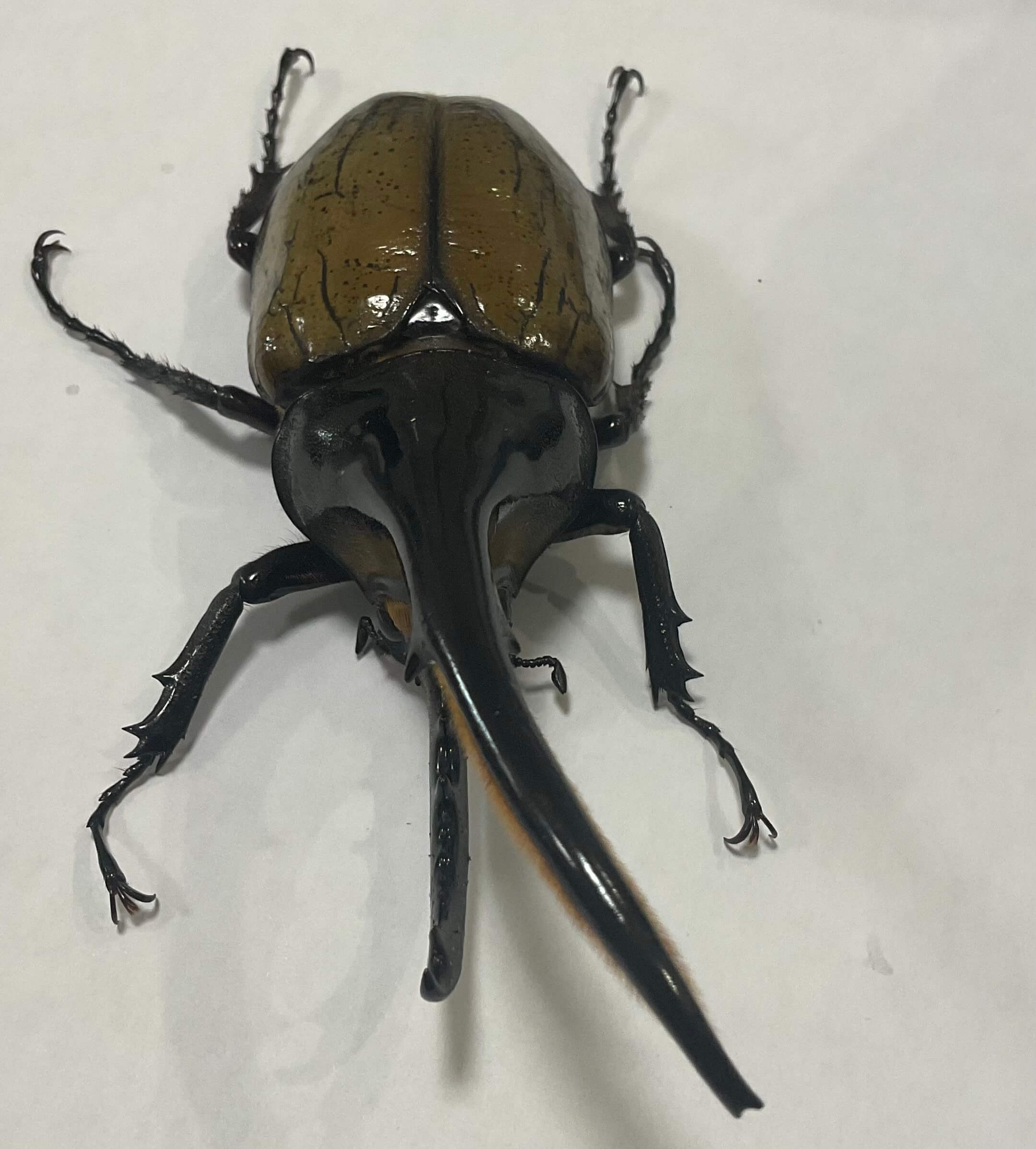 グアドループ産CB。2023年8月ごろに卵で割り出し、860CCプリンカップに投入。3令幼虫になったところで、小ケースに交換。その後は、約2ヶ月おきに交換し、2024年9月に人工蛹室に移し、2024年11月26日羽化。(ツノ曲がり)